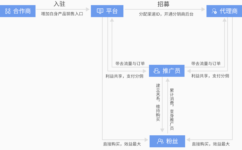 合作商、代理商、推广员各层级利润自动结算,合理分配利益。