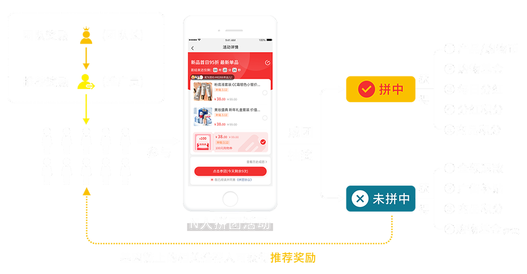 分享拼购活动给好友即有可能让好友赚钱,并且参与拼团,无论中奖与否,均有所获。