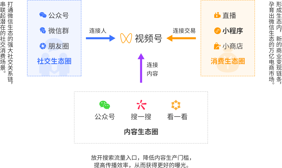 打通三大生态,相互链接导流,形成以视频号为核心更强大的生态体系,为短视频行业带来新一波的红利
